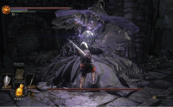 打这个BOSS我居然还死了6次,原因是机子太好,帧率总是在10左右无比稳定。长者的魔法还是很强的,不过准头略差。进门之后他会先放魔法,大略有3种。第一种是放个紫色雪花,意义不明,反正我没有刻意去躲也没被砸中,第二种是追踪灵魂块,这一招你只要紧贴在长者身边,他所有的灵魂块都会无比准确地砸到你身后的地上。第三种则是白龙吐息,它会先放一条线然后爆出一堆水晶。前两招不需要可以去躲,但是第三招一定要躲好,因为伤害相当高。总之打他就是进门冲到他身边狂砍,无视他放魔法即可,不过一定要小心他用结晶刺剑挥砍(是的,这货拿着刺剑在砍你),这招伤害是很高的。基本上砍一会儿长者就会遁地,之后地上会爆出一堆水晶,不过你就算站着不动也不会爆到你;之后他会再钻出来,然后就接着砍他好了。