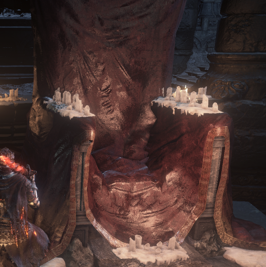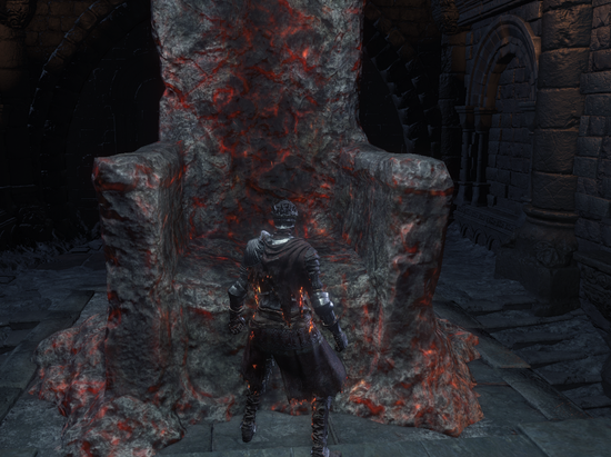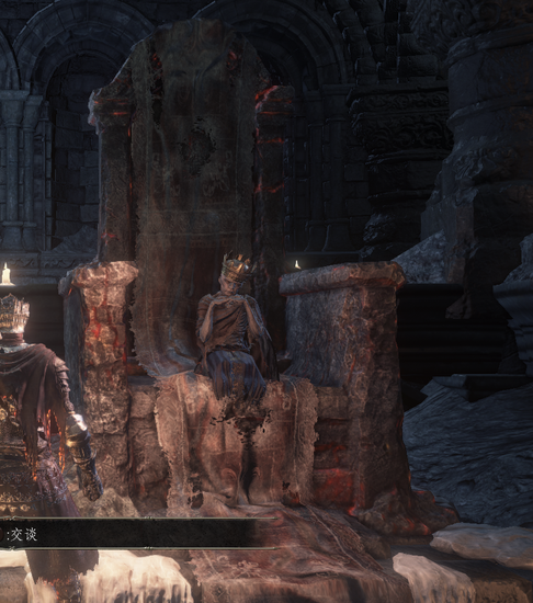 第二个传火的:尤姆,王座根基已经没有余火了,只在背后残留了一点点。