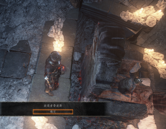 第三个传火的:鲁道斯,王座根基还留有一些余火。