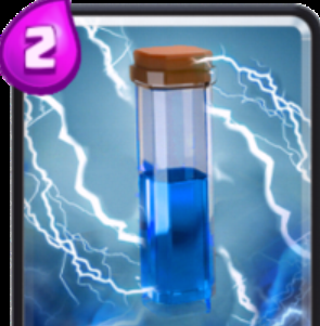 飞桶战术,带了一张小闪电,作用是消灭为了阻挡飞桶哥布林偷塔,而放下的哥布林投手和刺刀哥布林。