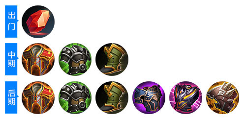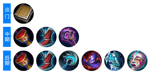 后期装:圣杯、冷静之靴、冰霜法杖、博学者的愤怒、寒冰之心、折磨面具