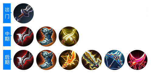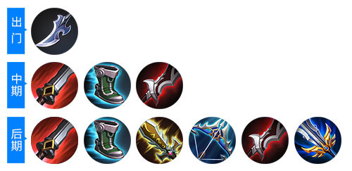 后期装:贪婪之噬、抵抗之靴、无尽刀锋、破甲弓、泣血之刃、破军