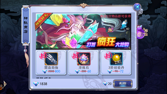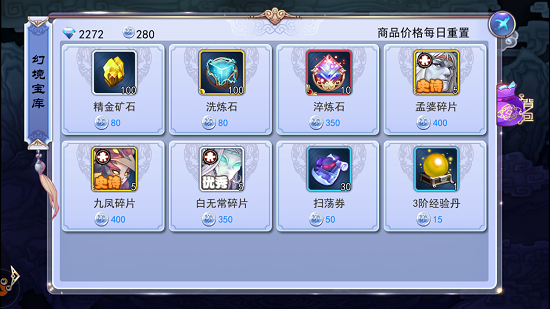 接着,我们来看一下游戏当中的道具的获得方式。在游戏的前期,每个玩家能获得的英雄都是有限的,那么装备的差别就决定了战斗力的强弱。除了打通副本可以随机掉落的装备之外,我们还能在各种各样的商城中购买道具。游戏中的道具商城包括有“奇珍阁”、“神秘商店”和“幻境宝库”,我们接下来一一为大家作详细介绍。