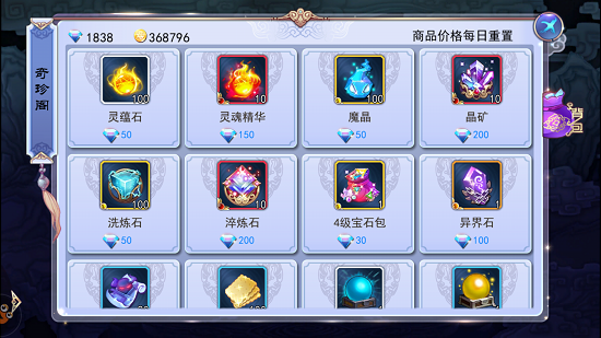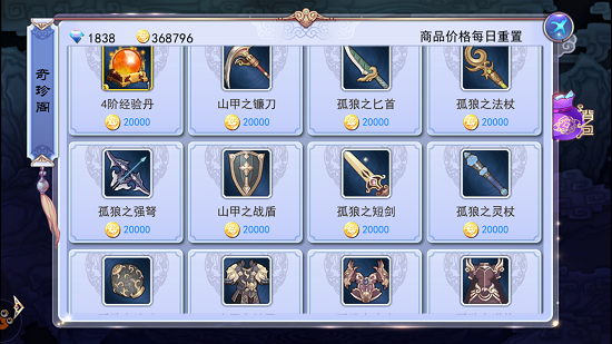 奇珍阁中可以获得游戏最基础的道具以及装备