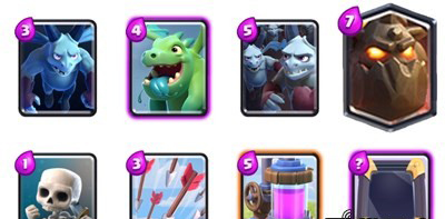 之前带了哥布林飞桶这样加强进攻性的卡,虽然在压制成功之后效果非常好,但是毕竟不是每一局都能有效压制对手,所以在现在我们加强了防御能力选择使用骷髅兵,配合亡灵、亡灵大军防御王子、野猪之类的正面突进都非常有效。