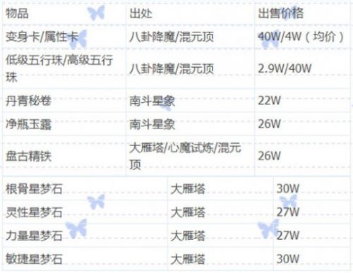 那么,除了以上,还有什么东西会可以出售呢?以下是副本所产出的物品: