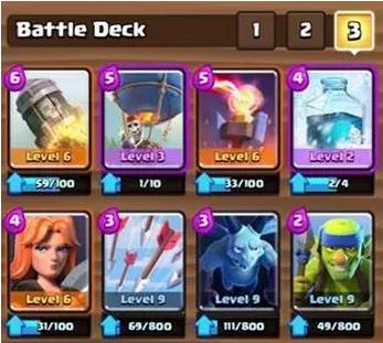 冰球一直是很可行的思路,在冰猪越来越被针对的今天,气球作为推进核心更让人安心。毕竟一般套牌中常见放空手段就是核桃,半预判的准备好箭雨就可以。但是气球真正的大敌实际是被冰法减速后被土炮或墓碑风筝,这样的话没有太多的好办法,只能抓对手的防御漏洞偷血,之后循环大导弹补刀吧。如果你的段位多建筑套牌比较多的话,要么放弃这套,要么换为大闪电试试。