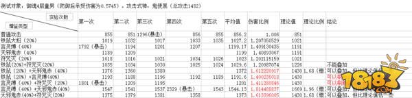 附:各种buff、debuff伤害加成后实验数据。加红的部分是楼主在实测后与最初的假设有出入的数据。最开始发现天邪鬼赤增益之后的实际伤害比理论值低,所以换了大号(言灵星满级)再进行了一次实验,最后发现了前面的结论。