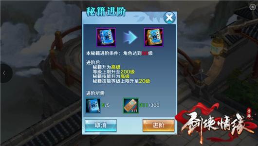 此次更新全面开放了各门派的高级秘籍,让已升满中级秘籍的少侠又有了新的提升空间。当少侠达到高级秘籍晋升等级时,就可以消耗5本同类初级秘籍和300信物进行进阶。进阶为高级秘籍后,秘籍等级上限升为200级,秘籍技能等级上限也会升至20级,并将为少侠带来更高的技能加成效果。