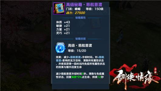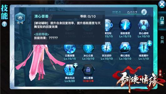 峨眉<清心普善>被动辅助技能,提升自身回复效率,提升慈航普度于天舞宝轮的回复效果。
