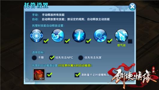 此次更新还多了许多细节上的优化。在自动战斗设置界面新增“酒数量不足时提醒购买”选项,当少侠使用背包最后一瓶酒时会弹出购买提示,避免因缺酒而造成的尴尬。各门派的初、中、高级秘籍名称也有所调整,与主动技能直接关联,让少侠对各大技能一目了然。而华山论剑的每日最大参与次数变为6次,少侠再也不必为继续华山还是提前组队名将而纠结了。此外,在线托管界面及跨服匹配机制也得到了优化,让少侠的游戏体验更加畅快。
