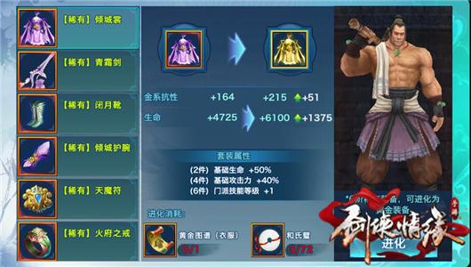 更新后,少侠不仅可以打造、获得、穿戴八阶装备,还可以通过进化或升阶获得八阶黄金装备。少侠使用黄金图纸和一定数量的和氏璧,就可以直接进化获得对应的黄金装备,大幅提升实力。