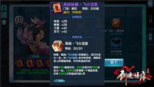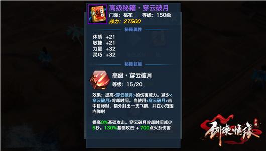 显而易见,高级秘籍的出现,一定程度上提升了桃花的攻击力、灼烧、忽闪和会心一击等属性,是对门派技能特色的补充。所以,有条件时,建议第一时间打造高级秘籍,强化自身综合战力,提升实战效果。