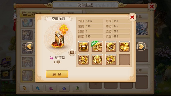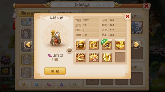 不要以为佛门弟子只会在战场上担纲救死扶伤的角色。法明长老所具备的强大辅助能力,使其备受物理输出系的喜爱。他不仅相对于其他治疗系伙伴更为抗封,而且他的金刚护体技能优先作用于物理输出系,并对首目标附加一定的物理伤害。相信有他在队伍之中,像狮驼岭、大唐官府这样的门派,一定能够畅享战斗快感!