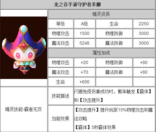 再者就是A级精灵守护者米娜作为S级的精灵,他有着极高的属性值。物理防御+142、防御+142、最大生命+1622的属性加成可以很大幅度增加贤者的抗性喝血量。技能时空行者,有几率触发致命提升和致命伤害提升以及冷却缩减光环,可以大大增加贤者的输出。