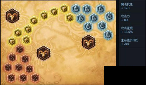 高额的双穿可以极大的提升石头人的输出,而成长生命值跟成长减CD对于石头人来说同样性价比极高,一定的护甲保证线上的对拼。(红色全双穿,黄色4个护甲5个成长生命值,蓝色6个成长减CD 3个法穿,精华全双穿。)