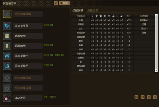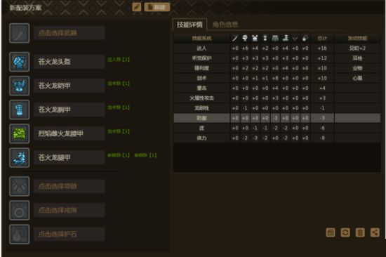 配装1:苍火龙头、手、胸、腿+烈焰腰 护石:不需要护石。