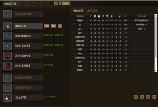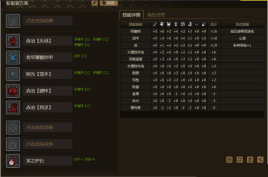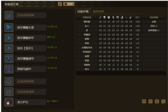 配装2:钢龙头+明光手+将军镰蟹胸+赤冶腰、腿 护石:达人9。