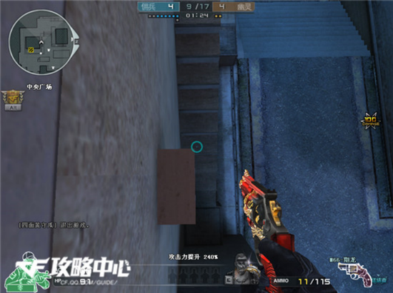 如下图,先从中央广场跳上二级平台,跳的时候尽量斜跳,更加方便