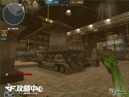 在从这个跳点跳上更高一级的跳点,这时我们会有两种选择,一是直接跳上头顶的横梁,从后面爆菊花,二是跳上最高的平台,从正面将平台上的人全部感染。这里推荐使用第二种方法,因为只要你跳上后面最高的那个跳点,功破前面不在话下。