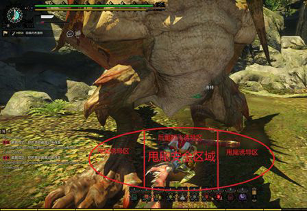 1:在烈焰女王身边烈焰女王会下意识甩尾转圈来攻击身边的猎人,而烈焰女王的尾部有微微拱起,在紧贴烈焰女王的脚部或在其两脚之间是不会受到甩尾伤害的。猎人可以尽量贴近两脚,或在两脚间偏移一只脚诱使烈焰女王甩尾来骗取攻击盲区来对其腿部腹部造成伤害。