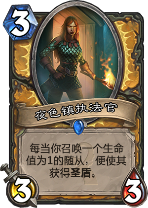 每个版本都有动物园。有些玩家就是不管什么环境下你问他最强势的卡组是什么,他只有一个答案:动物园。动物园实在是太纯粹,高效,简洁了以至于“任 尔东西南北风,我自岿然不动”。只要还有那些低费高效的随从,动物园就能有立足之地,因为它的抽牌曲线相比其他卡组实在是好太多了(基本上不会卡手)。有 人可能觉得动物园里面有些优质随从被排除在标准模式之外了,所以它不奏效了,但其实并不是这样。一张令所有人觉得意外的牌,夜色镇议员,被誉为”新的送葬 者“(译者按:因为纳克萨玛斯时期曾经出现过各种亡语搭配送葬者的动物园套牌,然而随着送葬者不再能由亡语获得生命值加成,这种打法也逐渐消失了)。