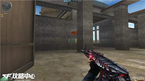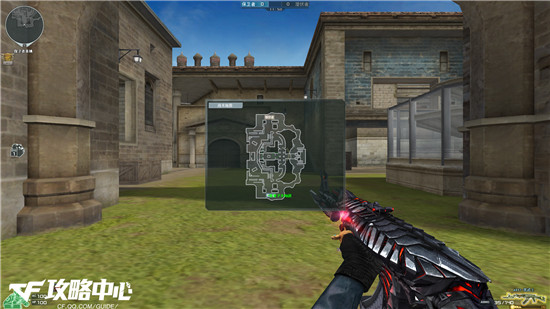 事不迟疑,我来给大家看看这张图,首先我们可以选着卡在这里-广场。这里位于右路二层,这里我们看到的信息超级多,首先这里我们能很好的卡住敌方的狙击点,这样能占据一定的优势,为队友作掩护。再来我们这里还有卡住二楼的入口,这样可以防止敌人从中路通过支道攻击右路,我们在这就可把握一定的主动权,击杀敌人。