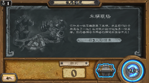 又到了星期四,炉石传说按例有开启全新的冒险模式,这个的冒险是一个新的模式——“车祸现场”。你和另一位英雄遭遇了车祸,并且你们的卡牌混在了一起!在对战开始时选择另一位英雄,你的套牌会由两者随机组合而成!