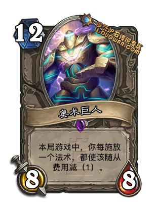 在傻龙卡组里比冰霜巨人要快不少, 然而还是太慢, 对于傻龙德和傻龙法来说这张卡起不到关键作用. 不知道以后会不会有特别后期的法师卡组,可以一带.