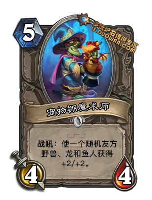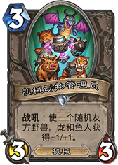 自身白板,费用太高同时是张卡手牌, 需要buff两张才不亏, 所以就远不如机械动物管理员灵活了.