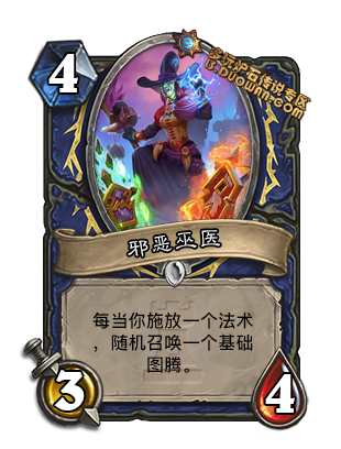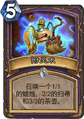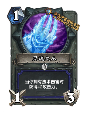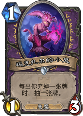 继过载之后暴雪开始弥补弃牌特效的缺陷. 这张卡在动物园里代替了银色侍从的卡位, 同时可以满编灵魂火,少带甚至不带力代. 想想一个无副作用的灵魂火前期带来的压倒性统治力,图腾魔像很屌么?用1费灵魂火解决,节奏抢的飞起. 5费如果这张还在场, 那么直接冲大哥带来的压力实在是恐怖. 原本没人带的232图书馆管理员也可能启用.顺便一提这是一张恶魔, 虽然现在没有能用的buff恶魔的牌.