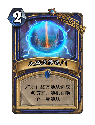 没有大用, 增加5点疲劳, 不过防战内战不错. 小tip:这5张橙卡只会是自身职业橙或者中立橙,而且不会重复. 比如你带了雷诺和大王, 这5张牌就不会出现雷诺和大王. Jason说这张牌给宇宙术强无敌, 但我觉得好像并没有卵用的样子 毕竟是对战开始塞5张, 你前期抽到这些橙卡基本都用不了卡手, 橙卡质量也不能保证.