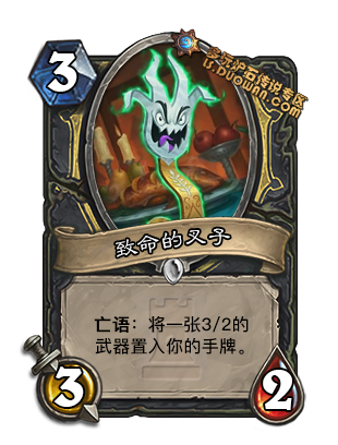 组合卡,3费32身材亡语给一把3费32的武器. 构筑里两者都太亏节奏了, jjc可以一用.