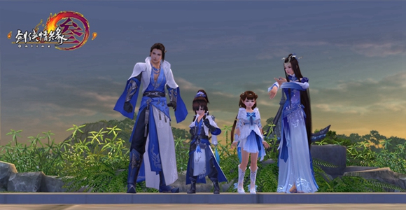 侠士装备齐套装后,可激活外观互动按钮。点击使用后,套装中的披风将由身后垂落造型变为与肩饰外装融为一体的披风向前围裹包覆身体的特殊造型,并伴有酷炫动态粒子特效。侠士不仅可以在包身造型下骑马、战斗、大轻功,还可在常规造型和包身造型中自由选择切换。