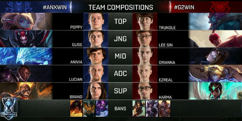 中单的冰鸟晕人的准头也很可以,一直压制发条。并且来到下路拿下一血塔。利用冰鸟的墙堵住对面过来,直接拿下第二条小龙(水)。随后一直在发育推线,盲僧找到机会打小龙,蜘蛛想抢但没抢到反而送命,G2在中路想杀冰鸟,反而被火人大招烧死发条。随后ANX突然一波偷大龙,G2防不胜防,这个画面非常熟悉,像跟CLG打的一样。利用大龙推掉一塔,并且又能顺利拿下小龙和中二塔非常赚。如果输了G2怎么回去。