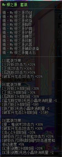 根之源是E2的套装,9件套的效果是破极兵刃技能攻击力+20%,同时在破极兵刃持续时间内攻击速度和移动速度+5%,用来堆破极再合适不过了。