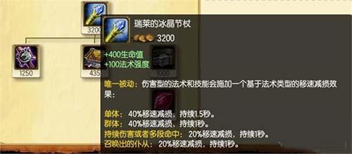 不低的法强加成,并且冰杖带来的可怕的减速,对单位造成移动受损的效果,配合大面具的被动,将收益最大化。