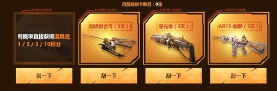 活动期间,对下列极品道具使用刮刮卡刮一下,有机会直接获得该道具奖励,没刮中道具奖励必得积分补偿,使用积分可以在STEP3兑奖区中兑换道具奖励。