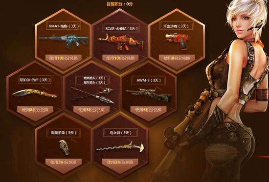 活动期间,使用积分可以直接兑换以下奖励,每个奖励每天只能兑换一次。