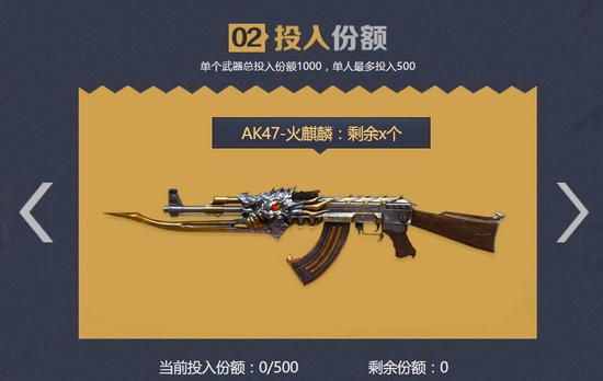 2、每次投入份额要等到武器满1000份额才可以开奖;