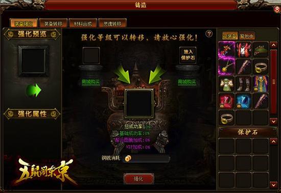 首先是装备系统,是玩家提升战力的一大主要途径,也是游戏回收道具和货币的一个重要的方式,装备主要靠FARM和氪金,小编小氪了一把,装备整体还算过得去,推图、PK基本上够了,当然不能跟壕们比,每次强化都是一大笔花销,好在游戏的铸造系统可以把旧装备的强化等级转移到新装备上,旧装备还可以拿去给专门的NPC回收。
