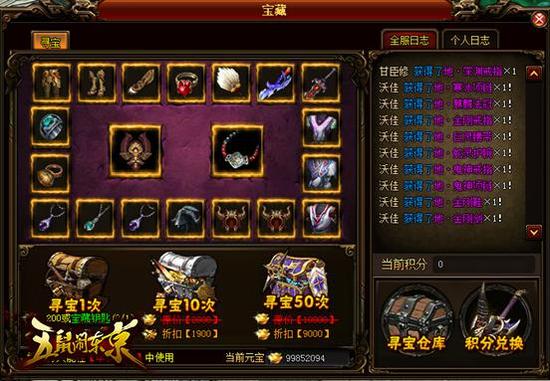 然后还有一个系统非常有挑战性,那就是寻宝!不过它挑战的是你的血统和人品,是欧皇还是非酋一试便知,不过没办法很多好装备都得在这里出,所以寻宝之前一定记得要洗脸!
