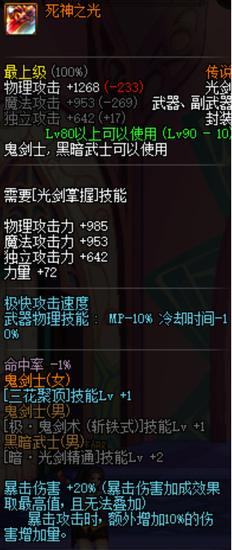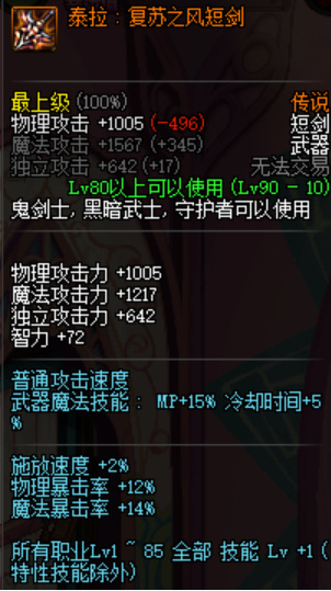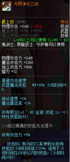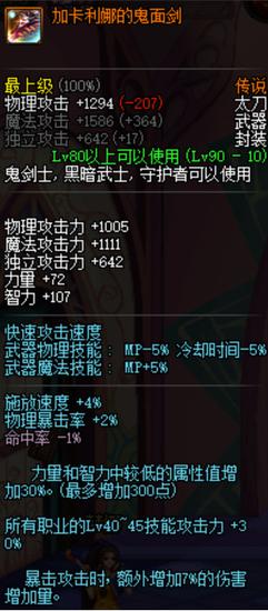 完全是为黑暗武士量身定做的太刀。因为除了黑暗武士的力智等同之外,鬼剑士没有任何一个职业是同时依靠到两种属性的,该堆智力的就是堆智力,该堆力量的就堆力量。