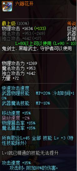 如果是加成属性值高的哪一方,那这把太刀无疑是鬼剑士的神器。更不用提40-45技能加30%的伤害,比一本白书都高。但缺点就在于这属性值是加在低的一方,那就基本没啥用处了。毕竟不是所有职业的爆发都在40-45技能之间。
