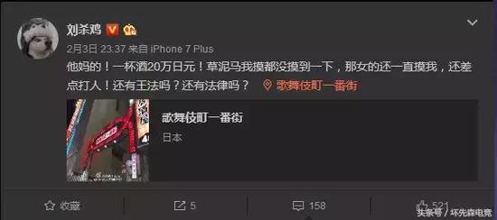 酒托这个词相信大家都听过,要是被酒托套住,随随便便都会被宰个几千上万的。但是日本的酒托你遇到过吗?熊猫TV的主播刘杀鸡就遇到了,一杯酒20万日元,那女的还一直摸刘杀鸡,还差点打人。刘杀鸡大呼毫无王法,毫无法律。别以为20万日元不多,换算成人民币也有12000了。本来出国游玩时非常开心的事,想不到弄成这样。
