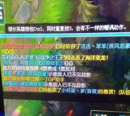 其实这是游戏中的辅助锤石打出GG然后直接空格弄一行,下面那句敌方英雄已投降是那个人打出来的不是系统打出来的。