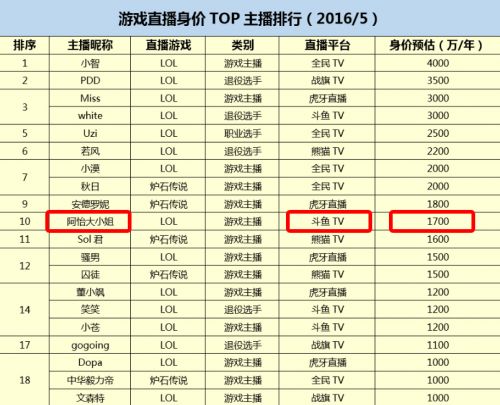 随着竞争加剧,经过一年多的洗礼,TOP20身价主播也有所更新,而主播也从集中平台,流向创业型公司全民TV、熊猫TV,战旗TV等。