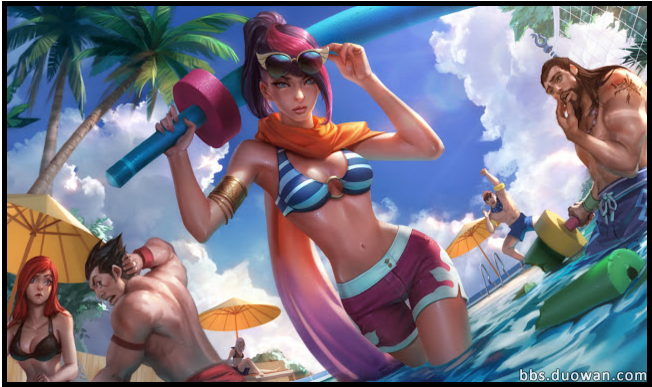 6.14版本测试服总计推出了三款全新的泳池排队系列皮肤。