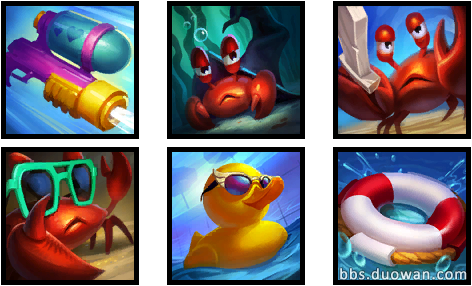 这次测试服中有七个全新的召唤师图标曝光,其中六个属于泳池派对系列。
