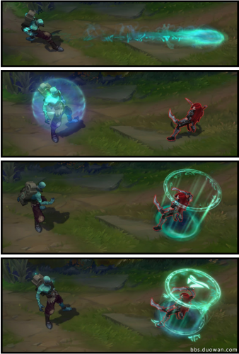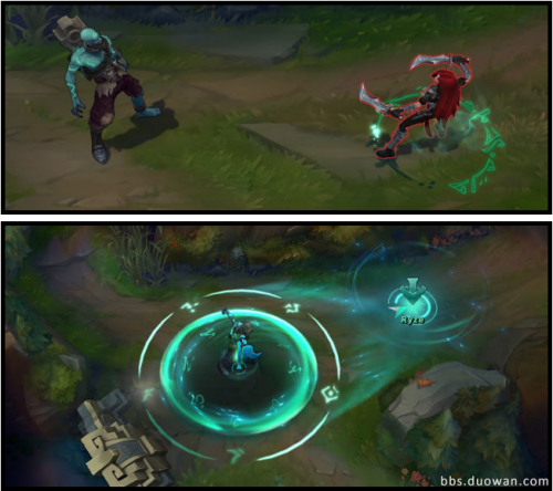 R:曲境折跃-在不远距离之外打开一扇传送门。几秒后,传送门范围内的全部友军将会折跃到目标地点。该技能自我施法无效,因为将自己传送到自己的位置很愚蠢。